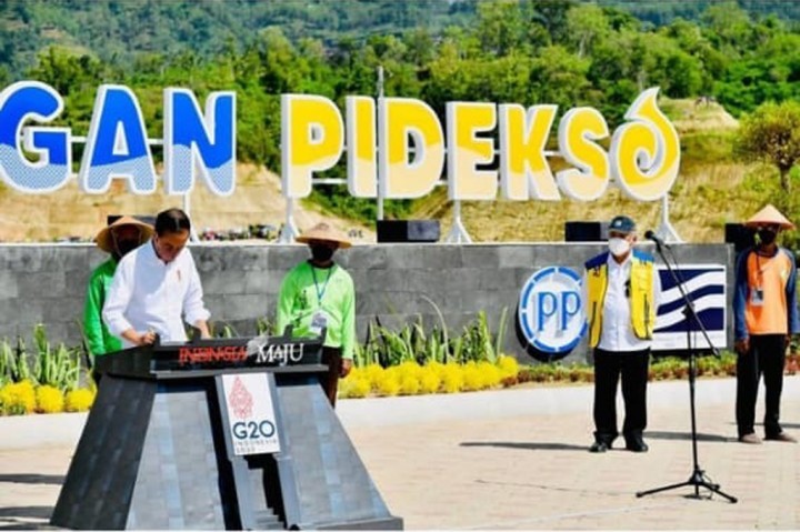 Jokowi menjelaskan, pembebasan lahan Bendungan Pidekso dilakukan pada 2014. Tiga tahun kemudian atau pada 2017, konstruksi Bendungan Pidekso dimulai.