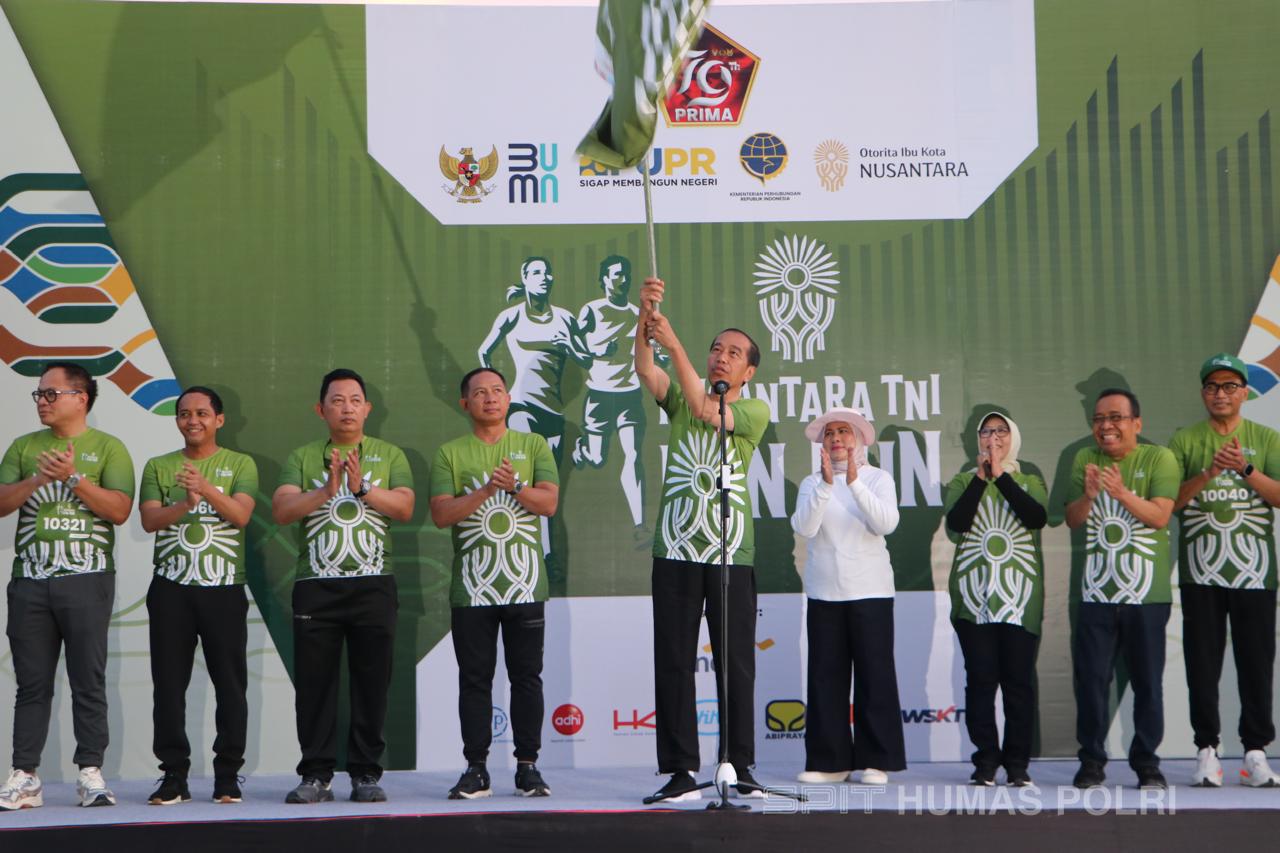 Presiden Joko Widodo didampingi Ibu Iriana Joko Widodo secara resmi membuka Nusantara TNI Fun Run 2024 di Kawasan Ibu Kota Nusantara (IKN), Minggu (6/10/2024).