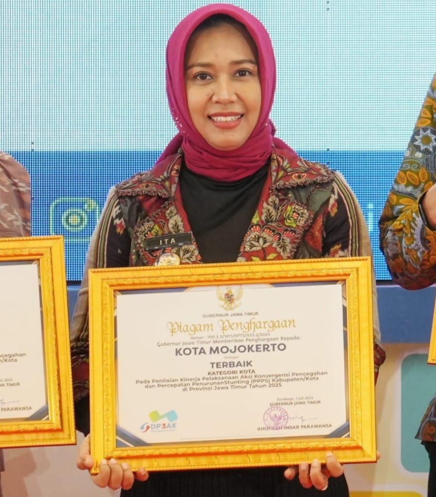 “Penghargaan ini bukan hanya kebanggaan, tetapi juga menjadi penguat bahwa kerja keras bersama dalam mencegah dan menurunkan stunting harus terus kita lanjutkan dengan komitmen yang lebih kuat,” kata Ning Ita, sapaan akrab Wali Kota Mojokerto.