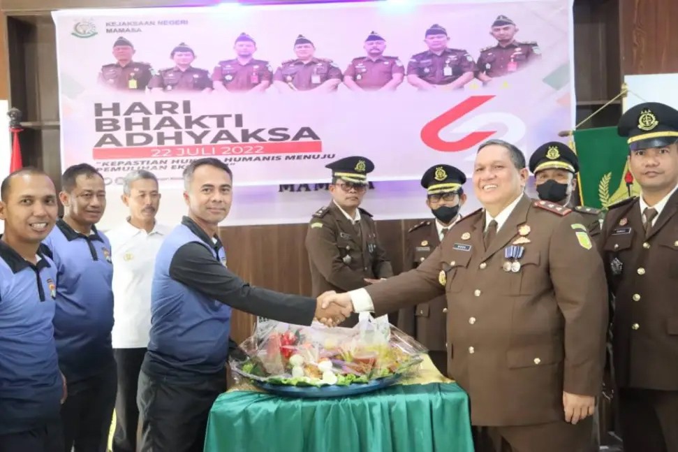 “Kami mengucapkan selamat Hari Bhakti Adhyaksa Ke 62. Semoga semakin sukses dan jaya dalam menjalankan tugas,” ujar Kapolres Mamasa menyerahkan tumpeng kepada Kajari Mamasa. Harapan kami selaku mitra kerja mudah-mudahan Kejakasaan bisa terus melaksanakan tugas dengan sebaik-baiknya dan semoga kedepan semakin maju bisa memberikan sumbangsih terbaiknya kepada bangsa dan negara.
