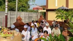 Kegiatan ibadah hari suci Tilem di Pura Kertha Bumi Bhayangkara dipimpin Pandite I Gusti Agung Mertayasa. Sementara Pengurus Pura Iptu I Gede Budayasa bersyukur atas terlaksananya ibadah ini.
