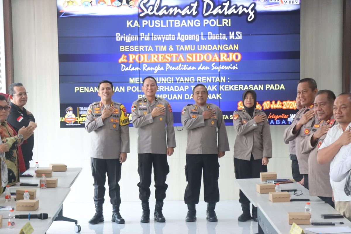 Di wilayah Polda Jawa Timur, penelitian Puslitbang Polri seperti dilakukan di Polresta Sidoarjo, pada Rabu (10/7/2024). Penelitian fokus pada melindungi yang rentan, penanganan Polri terhadap tindak kekerasan pada perempuan dan anak. Dengan menghadirkan dinas terkait, pengurus PKK Sidoarjo, Himpaudi Sidoarjo, Fatayat, Muslimat, LSM dan masyarakat.