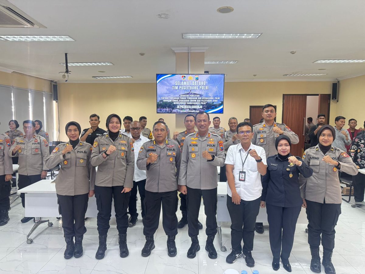 Pusat Penelitian dan Pengembangan (Puslitbang) Polri melaksanakan kegiatan penelitian di Polresta Sidoarjo, Senin (15/12/2025). Penelitian ini difokuskan pada tantangan fungsi pembinaan dan operasional Polri terkait pemeliharaan keamanan dan ketertiban masyarakat (Harkamtibmas), penegakan hukum, serta pelayanan kepada masyarakat dalam rangka mewujudkan transformasi Polri yang Presisi.