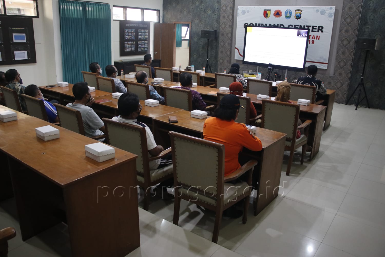 Suasana rakor PPKM Jawa Bali di Ruang Pusdalops Covid-19 Ponorogo