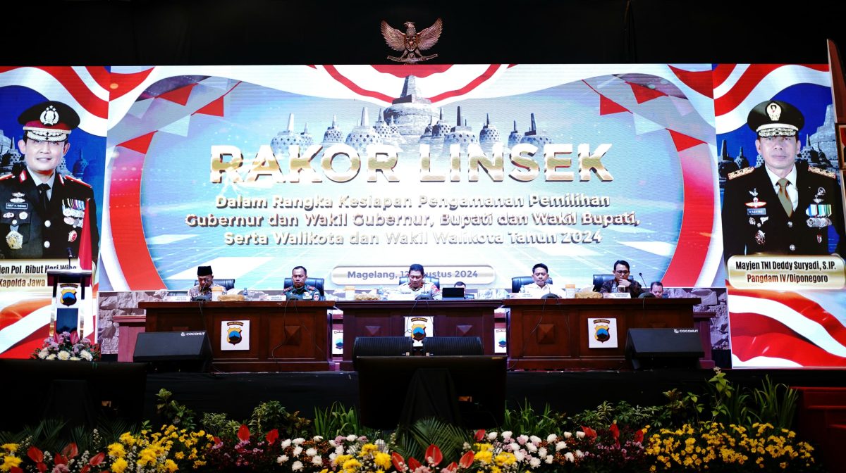 Rapat Koordinasi Lintas Sektoral (Rakor Linsek) yang diselenggarakan di Grand Artos Hotel and Convention Magelang, hari ini menandai komitmen kuat berbagai elemen di Jateng dalam mempersiapkan pengamanan Pilkada Serentak 2024. Acara ini dihadiri oleh sejumlah tokoh penting, termasuk Kapolda Jateng Brigjen Pol. Ribut Hari Wibowo, Pangdam IV Diponegoro Mayjen TNI Deddy Suryadi, Kabinda Jateng, Ketua KPU Jateng, dan Ketua Bawaslu Jateng serta jajaran TNI Polri dan Pemda. Senin (12/08/2024) pagi.