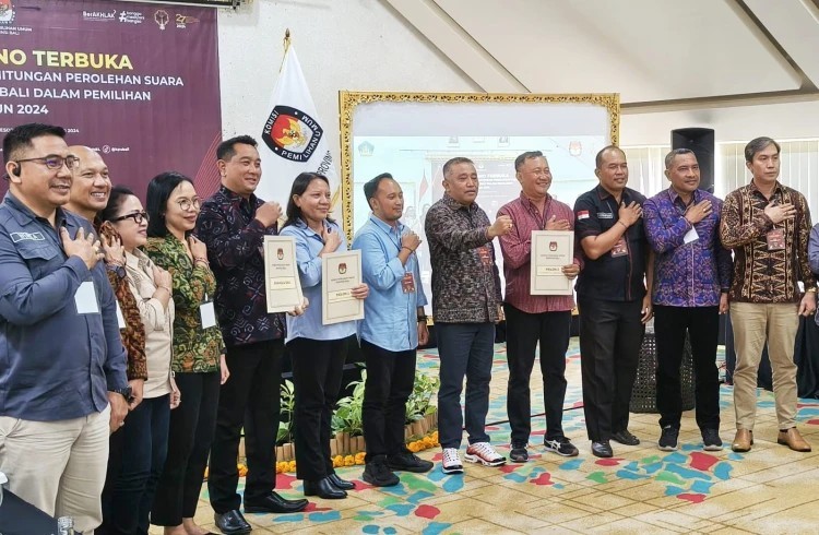 Akhirnya KPU Provinsi Bali bersama KPU Kabupaten/Kota se Bali dan Bawaslu Kabupaten/Kota se Bali serta Forkopimda yang juga dihadiri perwakilan paslon mengelar Rapat Pleno Terbuka Rekapitulasi Hasil Penghitungan Perolehan Suara pasangan calon (paslon) Gubernur dan Wakil Gubernur Bali di Tingkat Provinsi Bali dalam Pemilihan Tahun 2024 di Jimbaran Bay Resort, Badung, Minggu (8/12/2024).