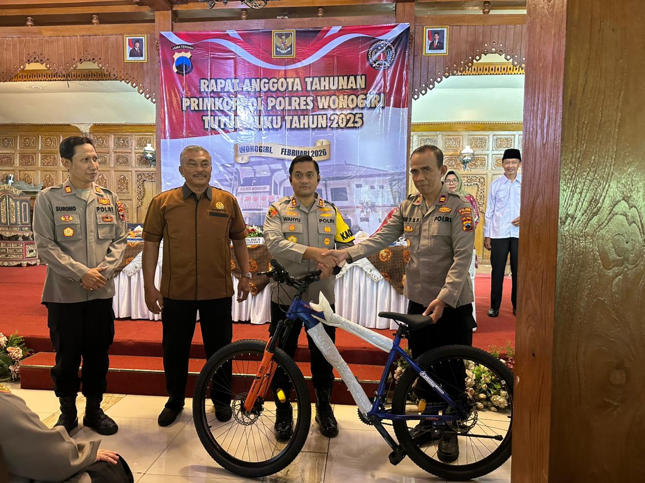 Primer Koperasi Kepolisian (Primkoppol) Polres Wonogiri menggelar Rapat Anggota Tahunan (RAT) Tutup Buku Tahun 2025 di Gedung RM Saraswati, Jalan RM Said Wonogiri, Kamis (12/2/2026) pukul 09.00–11.17 WIB. Kegiatan dihadiri sekitar 150 peserta dan berlangsung tertib serta kondusif.