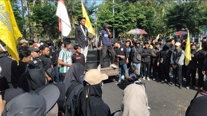 Setibanya di depan gedung DPRD, kelompok mahasiswa segera melakukan orasi dan menyampaikan tuntutan mereka. Suasana sempat memanas ketika terjadi dorong-mendorong antara massa aksi dan petugas keamanan yang berusaha menghalangi mereka memasuki area gedung. Meski mendapat perlawanan, massa akhirnya berhasil memasuki halaman gedung setelah beberapa anggota dan Wakil Ketua Sementara DPRD menerima mereka.