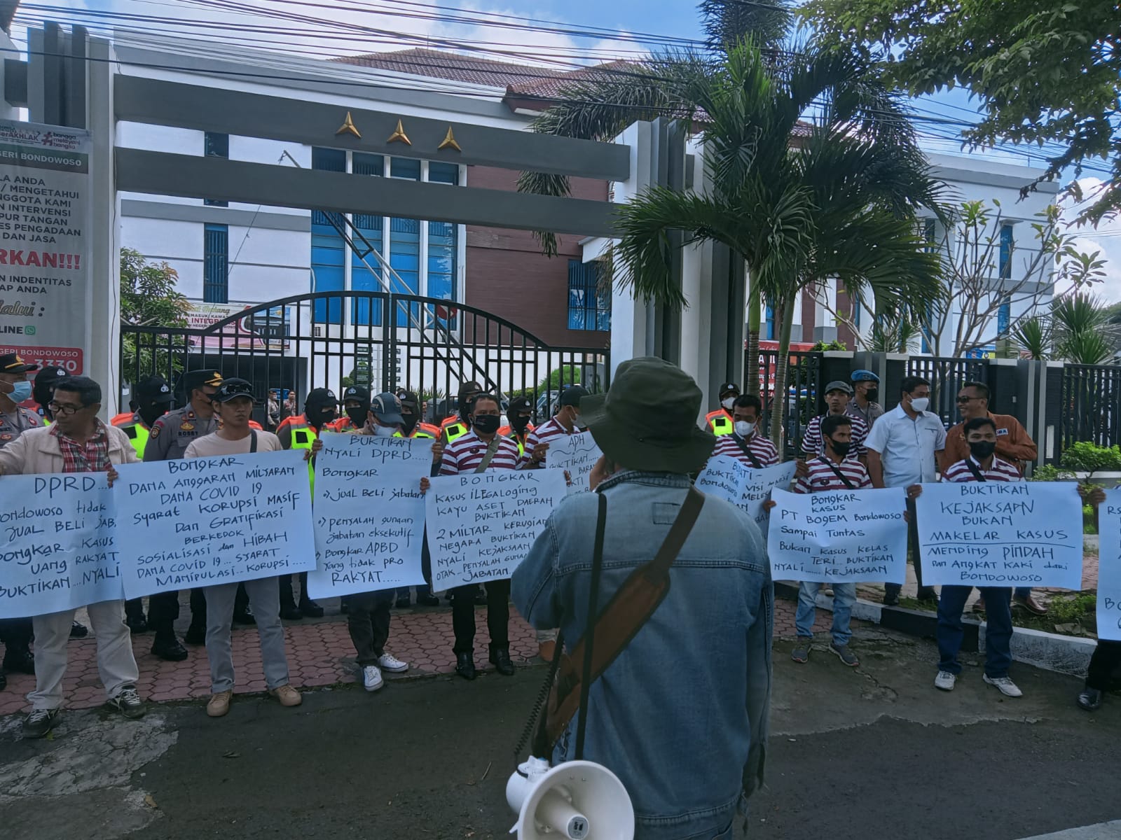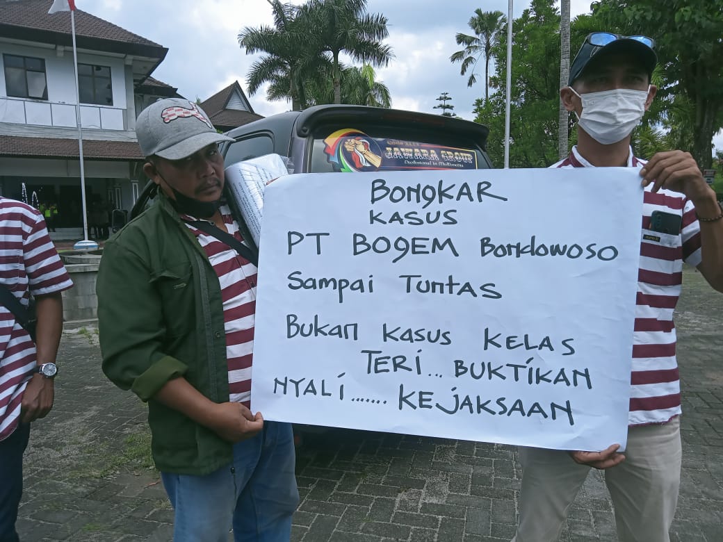 “Kasus PT Bondowoso Gemilang (BOGEM) ini, bukanlah kasus kecil atau kasus ikan teri. Milyaran rupiah telah dijadikan bancakan, ” ucap Ilham Mulyadi, Wakil Direktur LSM Jawara. Saat melakukan orasi.