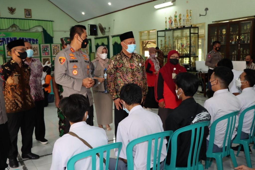 Bertempat di Gedung pertemuan MAN 1 Tulungagung Desa Beji Kecamatan Boyolangu, AKBP Handono Subiakto, SH, SIK, MH, Kepala Kemenag Kab. Tulungagung, Kepala MAN 1 Tulungagung, Kepala MTSn 1 Tulungagung, Muspika Boyolangu, Kepala Puskesmas, Kasi Propam Polres Tulungagung, Guru, Siswa dan warga mengikuti akselerasi vaksinasi serentak se Indonesia Secara Virtual dalam rangka mendukung percepatan Vaksinasi Booster.