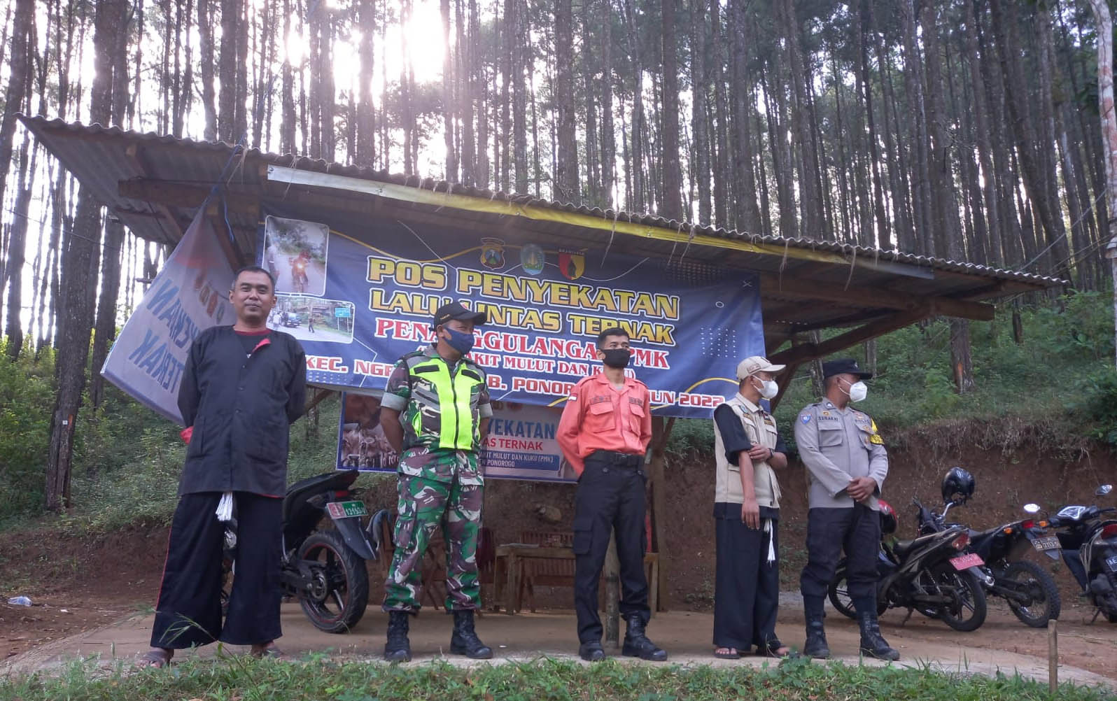 Kegiatan Razia gabungan dan penyekatan hewan ternak yang masuk ke wilayah Ponorogo bertempat dipertigaan tumpak Lego Desa Ngrayun Kec.Ngrayun Kab.Ponorogo.Minggu(24/072022).