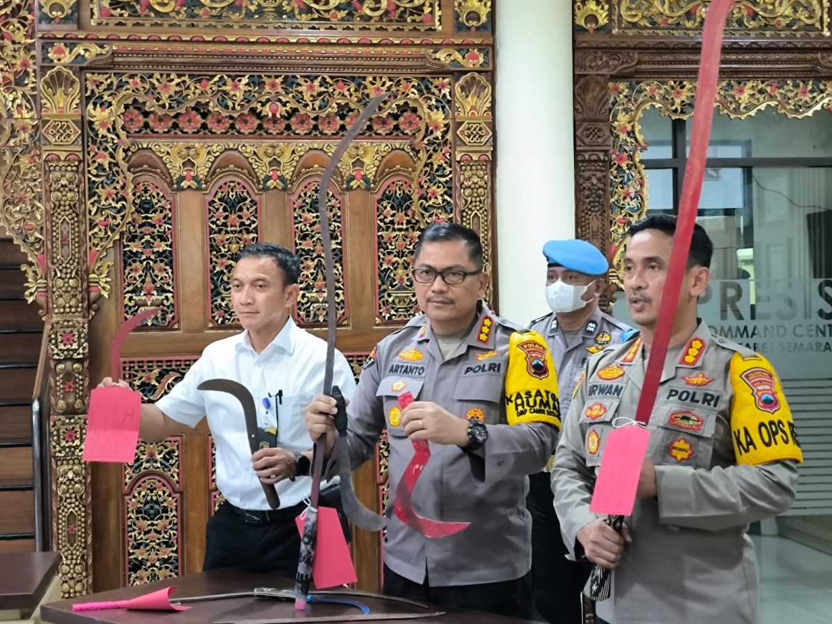 Dalam kegiatan yang turut dihadiri oleh Direskrimum Kombes Pol Dwi Subagio, Kabid Propam Kombes Aris Supriyono dan Kapolrestabes Semarang Kombes Pol Irwan Anwar, polisi menampilkan berbagai bukti yang menunjukkan fakta telah terjadi peristiwa tawuran antar gangster pada Minggu (24/11/2024) dini hari.