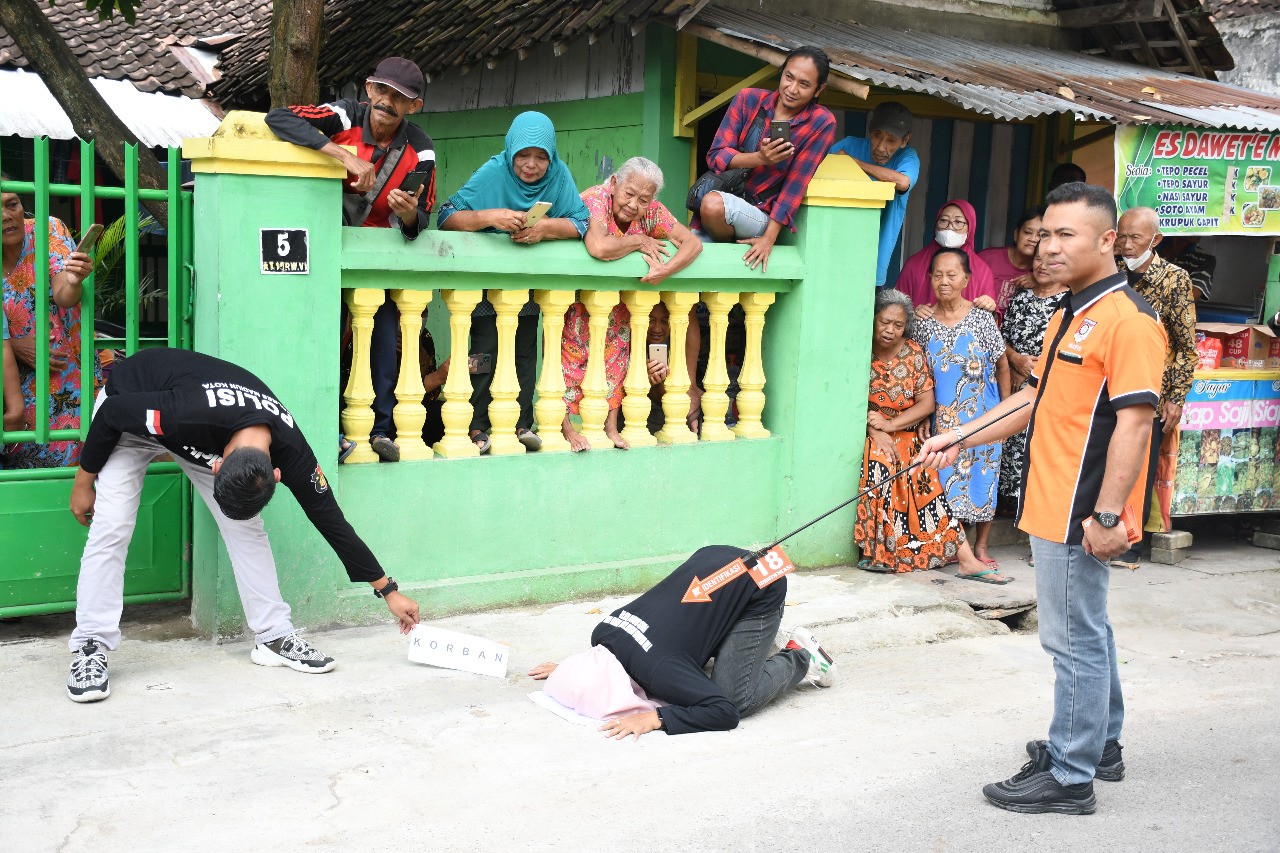 Rekonstruksi dipimpin Kasat Reskrim Polres Madiun Kota di Tempat kejadian Perkara di Jalan Niti Kusumo Kelurahan Demangan Kecamatan Taman Kota Madiun, Kamis (5/1/2023).siang.