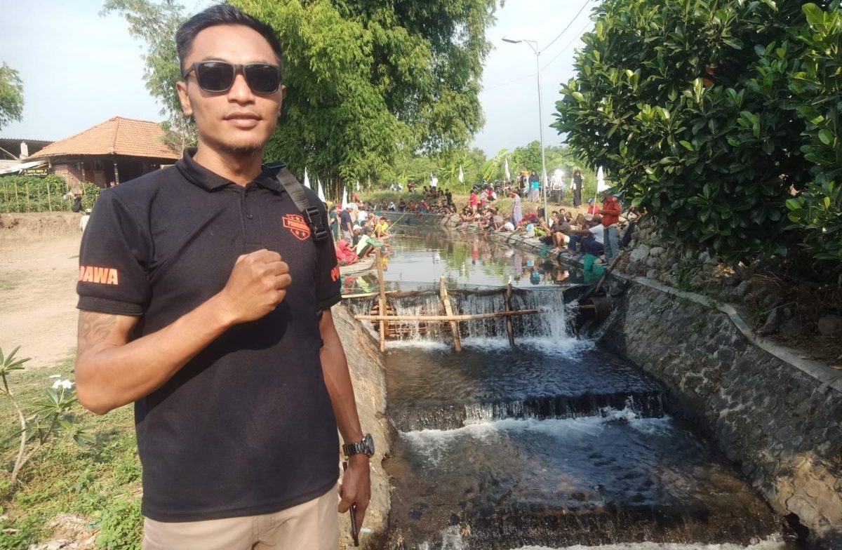 Ketua Relawan Pandawa Bambang S S saat berada di lokasi Mancing Mania Gratis di Desa Mojokarang
