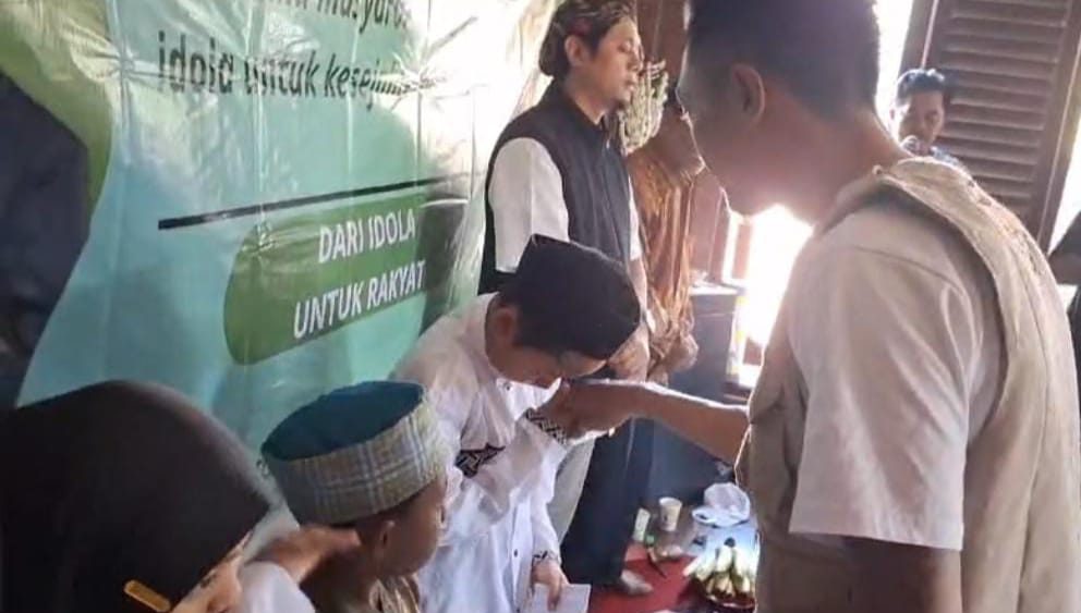Ketua Relawan Pandawa Bambang S saat menyantuni Anak Yatim disaksikan Gus Dulloh Calon Wakil Bupati Mojokerto
