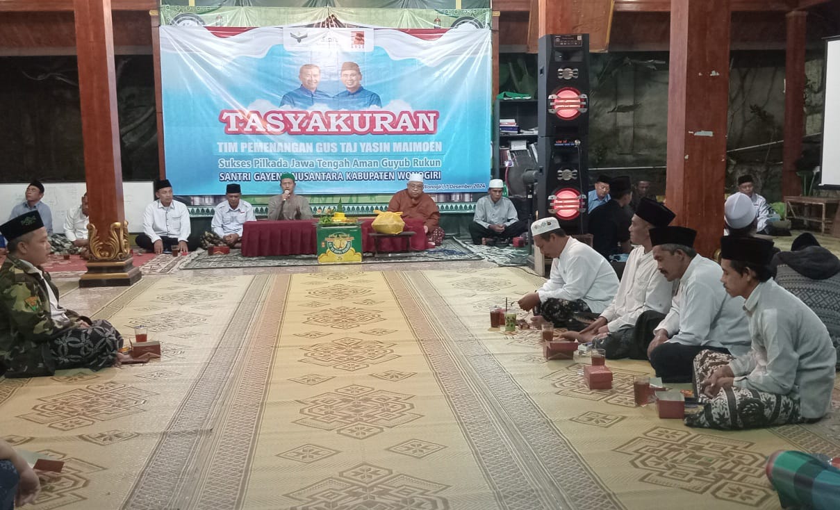 Relawan Santri Gayeng Nusantara (SGN] Kabupaten Wonogiri mengadakan tasyakuran atas kemenangan pasangan calon Gubernur dan Wakil Gubernur Jawa Tengah (Jateng), Achmad Luthfi-Taj Yasin di Pilkada Serentak, 27 November 2024.