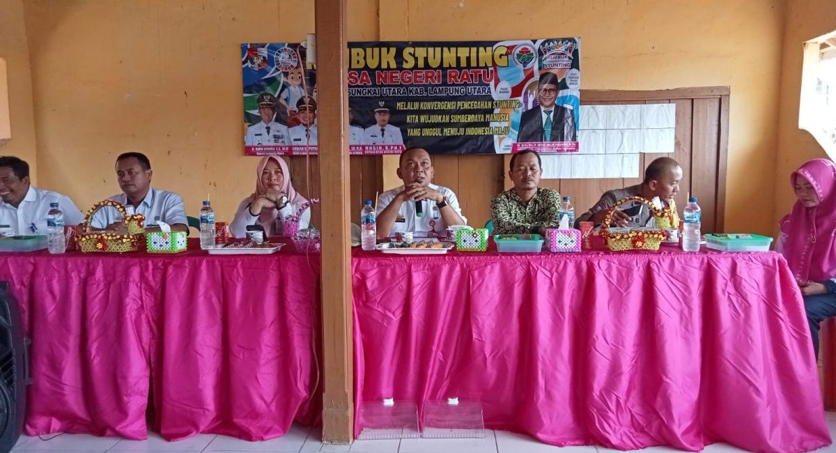 Pemerintah Desa (Pemdes) Negeri Ratu, Kecamatan Sungkai Utara, Kabupaten Lampung Utara, Mengadakan Rembuk Stunting, Penyusunan RKPDes, dan Serah terima pekerjaan fisik Ketahanan Pangan.