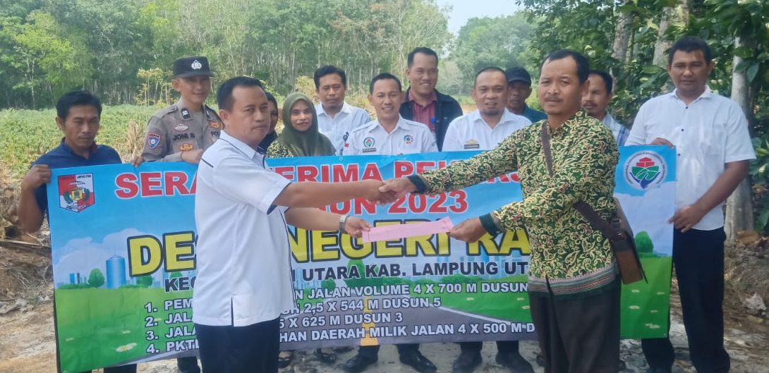 Dipenghujung acara tersebut Pemdes Negeri ratu menggelar acara, Serah terima pekerjaan fisik ketahanan pangan tahun anggaran 2023, Yang telah lama selesai 100%, yang diserahkan oleh TPK desa, dan kepala desa, kepada masyarakat yang diwakili oleh BPD, yang dibuka oleh camat sungkai utara, Antono Efendi, dan disaksikan oleh masyarakat, BPD Negeri ratu, Lpm, pkk, pendamping desa, pendamping kecamatan, bhabinsa, bhabinkamtibmas, dan masyarakat setempat.