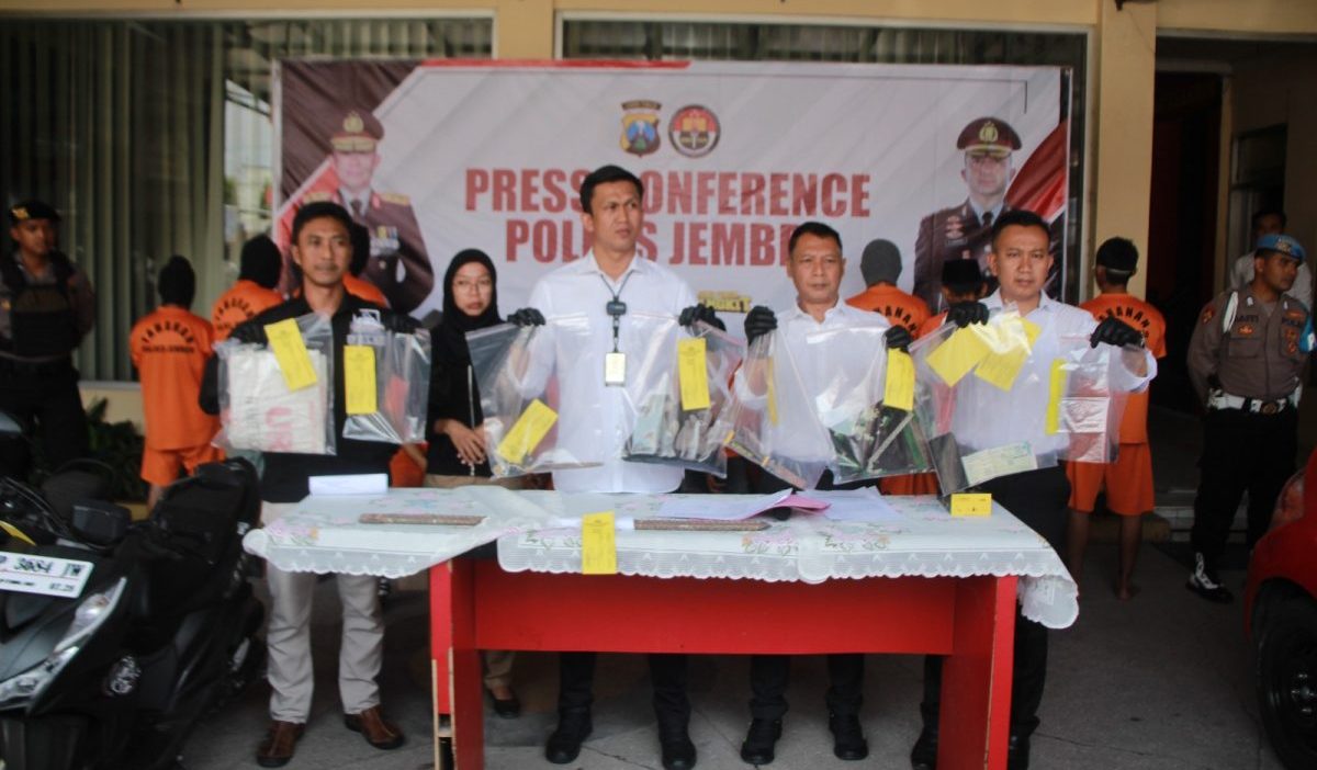 Polres Jember melalui tim Kalong Sat Reskrim telah berhasil menangkap sekelompok pelaku yang terlibat dalam empat kali kasus perampokan, pencurian dengan pemberatan atau melawan hak mengambil barang milik orang lain yang dilakukan oleh dua orang atau lebih dengan cara merusak, hal ini disampaikan oleh Kasat Reskrim Polres Jember AKP Abid Uais Al-Qarni dalam Pressconfrens nya pada hari ini, Senin (30/10/2023).