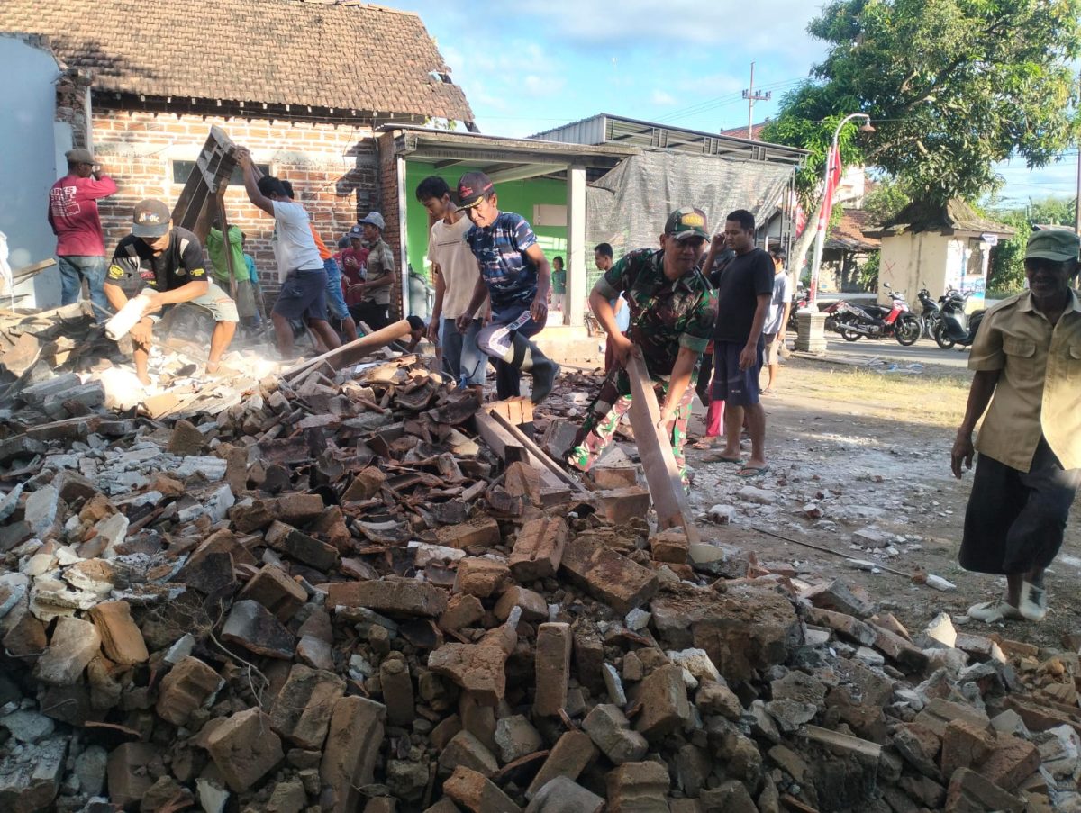 “ Hari ini kami dari Koramil 0802/02 Jenangan, Perangkat Desa, Bhabinkamtibmas serta warga sekitar melakukan pengamanan barang dan kerja bakti membersihkan puing puing bangunan. Dan Alhamdulillah selesai satu hari saja, “ ungkap Babinsa Desa Sedah.