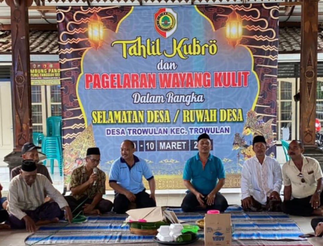 Sudah menjadi tradisi tahunan bagi warga Desa Trowulan Kecamatan Trowulan ini menguri -uri Budaya Leluhur nya dengan mengelar Selamatan Desa / Ruwah Desa yang dilaksanakan selama dua hari, yakni Kamis dan Jum’at, tanggal 09 – 10 Maret 2023 dengan mengelar kegiatan yang diawali Khotmil Qur’an yang dibaca serentak oleh 6 Majelis yang ada di Desa Trowulan, dan malam harinya digelar Tahlil Kubro di Pendopo Desa Trowulan yang dihadiri oleh Seluruh masyarakat Desa Trowulan dan Sesepuh serta para tokoh masyarakat yang ada di Desa Trowulan, yang diisi dengan Istighosah Doa Bersama untuk keselamatan dan kemakmuran Masyarakat Trowulan, yang masing masing warga membawa tumpeng dan tumpeng tersebut setelah didoakan dimakan bersama.