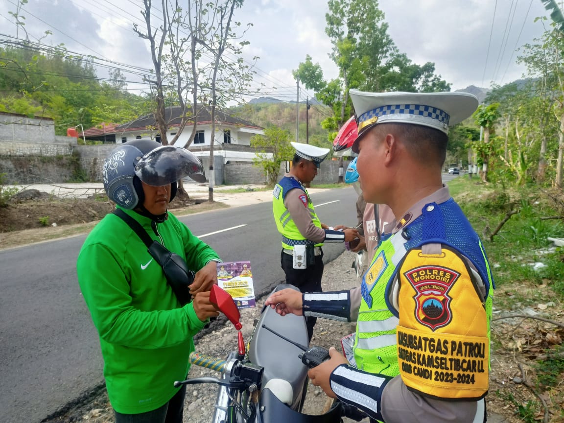 Kasat Lantas Polres Wonogiri AKP Edy Prasetyo, S.H., M.H., mengatakan ” kita bagikan brosur himbauan tertib berlalu lintas saat pelaksanaan apel siaga pengawasan Tahapan Kampanye Pemilu 2024 guna memberikan rasa aman, nyaman serta meminimalisir Fatalitas pada Korban Laka lantas”