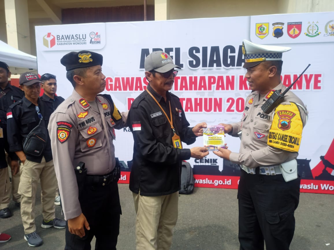 Kasat Lantas Polres Wonogiri AKP Edy Prasetyo, S.H., M.H., mengatakan ” kita bagikan brosur himbauan tertib berlalu lintas saat pelaksanaan apel siaga pengawasan Tahapan Kampanye Pemilu 2024 guna memberikan rasa aman, nyaman serta meminimalisir Fatalitas pada Korban Laka lantas”