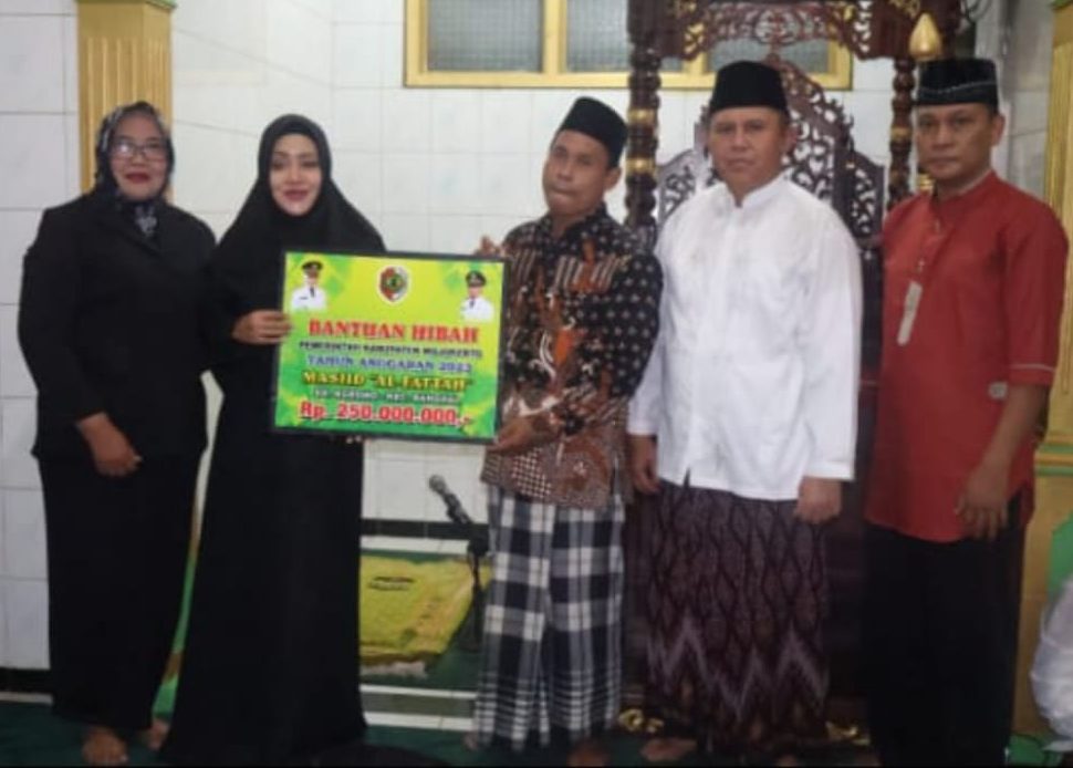 Pada momen Bulan Suci Ramadhan 1444 Hijriyah, Bupati Mojokerto, dr. Ikfina Fahmawati, M.Si, berkesempatan menyerahkan bantuan dana hibah Pemkab Mojokerto senilai 250 juta rupiah ke Masjid Al Fattah, Dusun Ngranggon, Desa Ngrowo, Kecamatan Bangsal, Kabupaten Mojokerto.