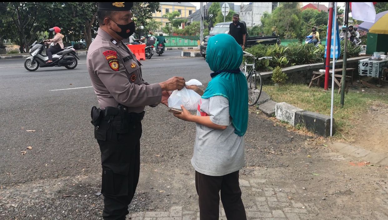 Hasil dari yang terkumpul dari anggota Sat Samapta Polresta Sidoarjo, kemudian dirupakan bahan makanan untuk diberikan ke orang duafa atau orang kurang mampu, yang ditemui anggota saat melakukan patroli kamtibmas di jalan raya.