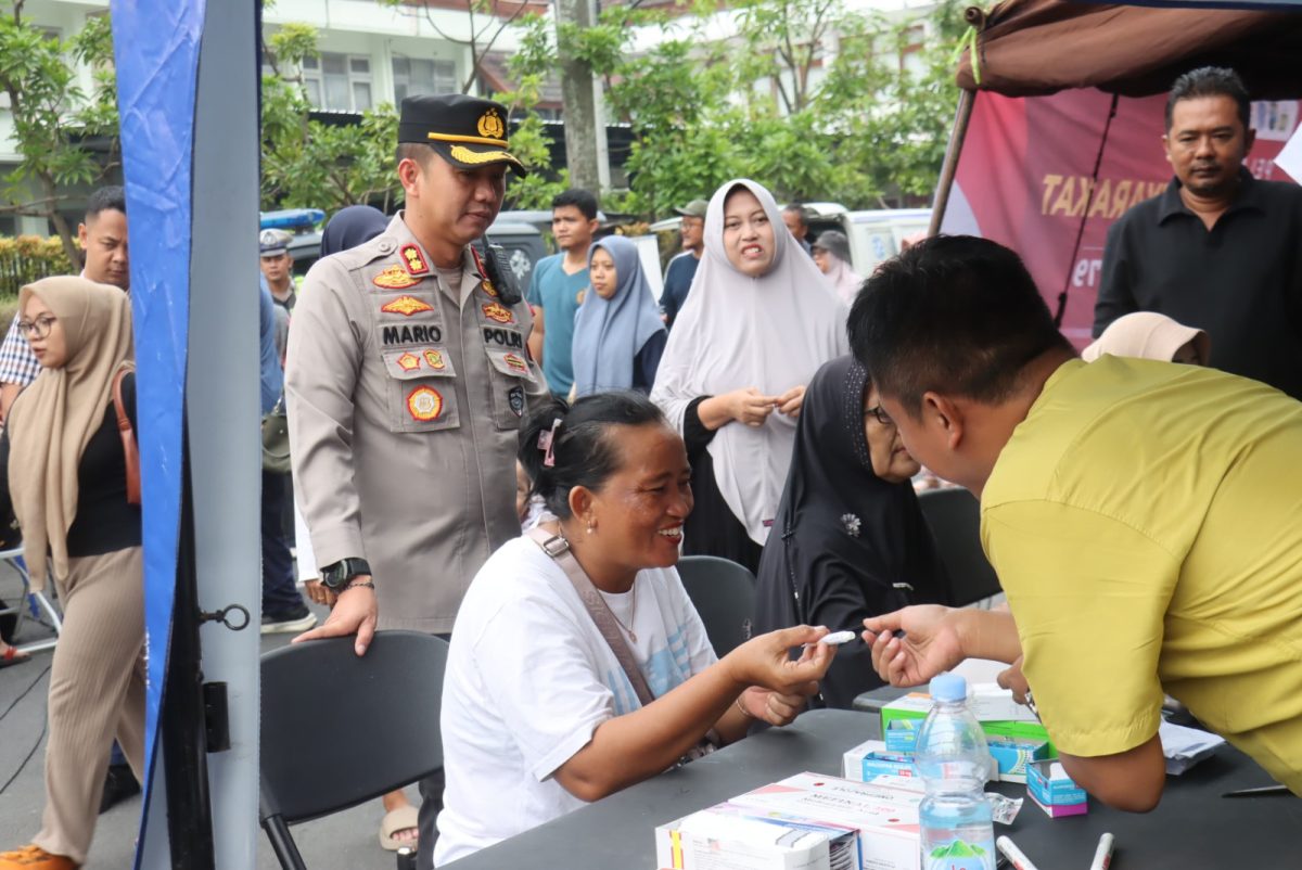 Layanan publik yang disediakan meliputi perpanjangan Surat Izin Mengemudi (SIM) dan pengesahan Surat Tanda Nomor Kendaraan (STNK) melalui fasilitas Samsat Keliling, pembuatan Surat Keterangan Catatan Kepolisian (SKCK), hingga pemeriksaan kesehatan serta pemberian obat secara gratis kepada masyarakat.