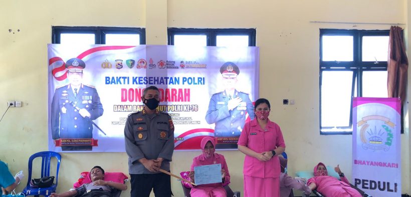 Bakti sosial tersebut dilakukan oleh seksi Dokkes Polres Bima bersama Unit Transfusi Darah RSUD Bima yang dipimpin dr. H. SUCIPTO melaksanakan kegiatan Donor darah terhadap personil Polres Bima, ASN Polres Bima dan Bhayangkari Polres Bima.
