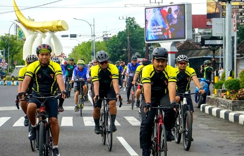 Bupati Ngawi Onny Anwar berkenan mengibarkan bendera Start Gowes dan Jalan Santai. Pemberangkatan dilakukan di Lapangan Hitam dengan rute sekitar Kota Ngawi.