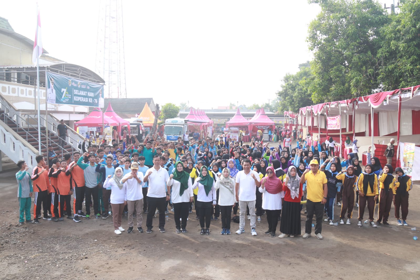 Bupati Mojokerto dr. Ikfina Fahmawati, M.Si, mengikuti senam kreasi Persatuan Wanita Olahraga Seluruh Indonesia (Perwosi) bersama dengan para siswa SMK Swasta Se-Kabupaten Mojokerto, pada Sabtu, (8/7) pagi. Kegiatan tersebut dalam rangka Jambore Koperasi Siswa memperingati Hari Koperasi Kabupaten Mojokerto Ke-76 tahun 2023.