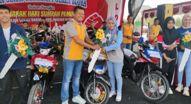 Luar biasa animo masyarakat Kabupaten Blora untuk mengikuti jalan sehat dalam rangka Semarak Hari Sumpah Pemuda yang dihelat Polres Blora, Polda Jawa Tengah. Berkat tangan dingin Kapolres Blora, AKBP. Agus Puryadi, hadiah utama tiga unit sepeda motor, ratusan doorprize dan hadiah menarik lainnya dipersiapkan untuk memanjakan masyarakat dengan penuh suka cita.
