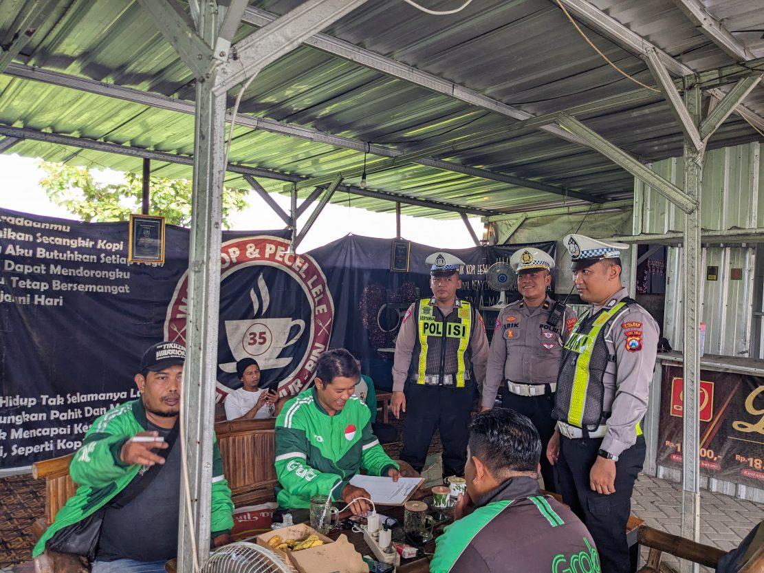 Untuk memelihara keamanan ketertiban masyarakat (Harkamtibmas) Satuan Lalu Lintas Polres Bojonegoro melalui Unit Keamanan dan Keselamatan (Kamsel) sedang ngopi bareng sejumlah ojek online (ojol) di salah satu warung kopi (warkop) jalan Pemuda Timur Kecamatan Kota Bojonegoro, Minggu (21/4/2024) sore.