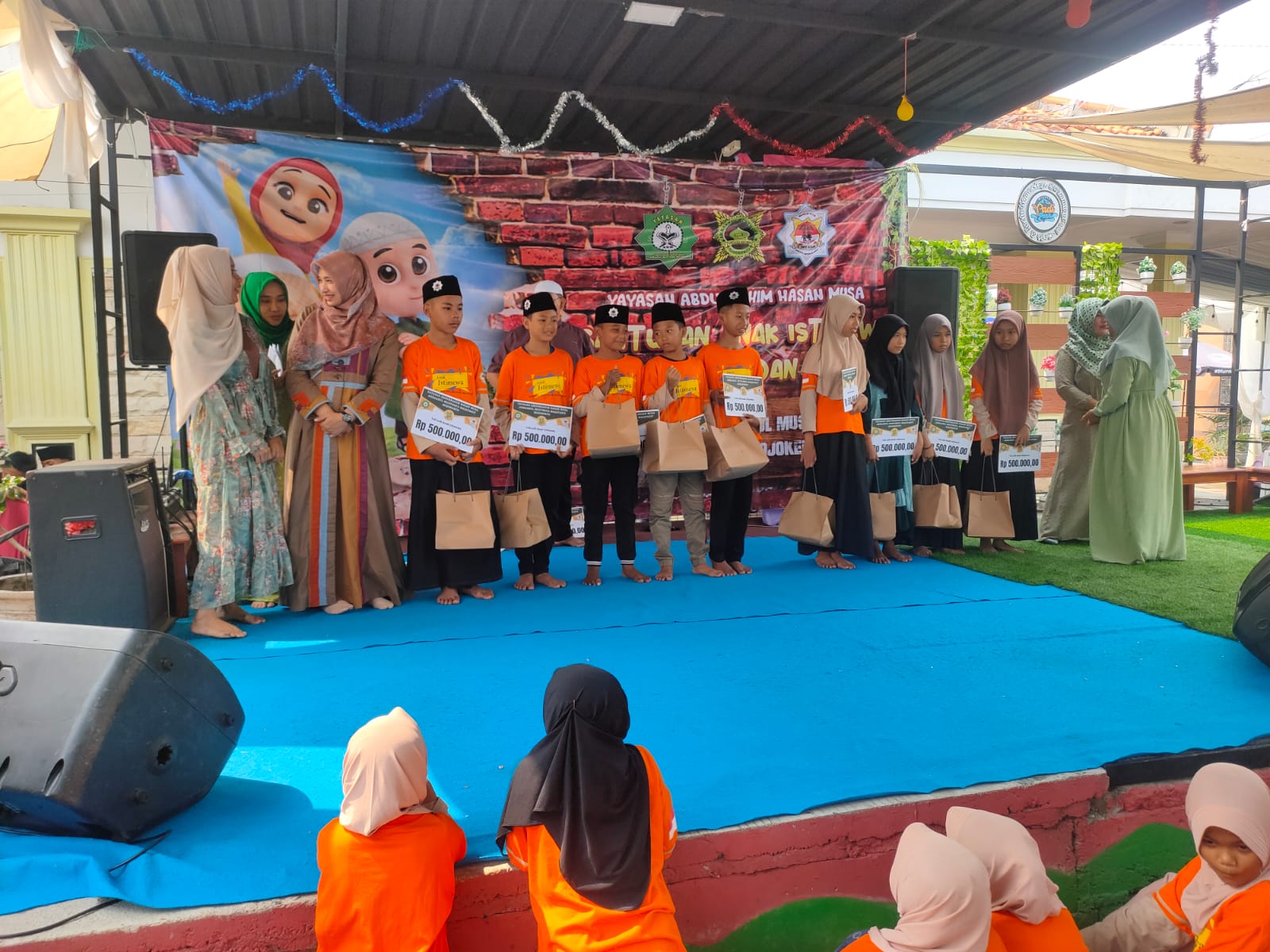 Dan acara diakhiri dengan pemberian Tali asih pada anak istimewa yang telah lulus dan masuk ke jenjang SMP berupa uang dan bingkisan peralatan sekolah yang di koordinasi oleh ibu Puput, setelah itu diakhiri dengan do’a penutup yang di pimpin oleh ustadz Nur Kholis seluruh anak-anak istimewa berhamburan berenang dan bermain dengan penuh kebahagiaan