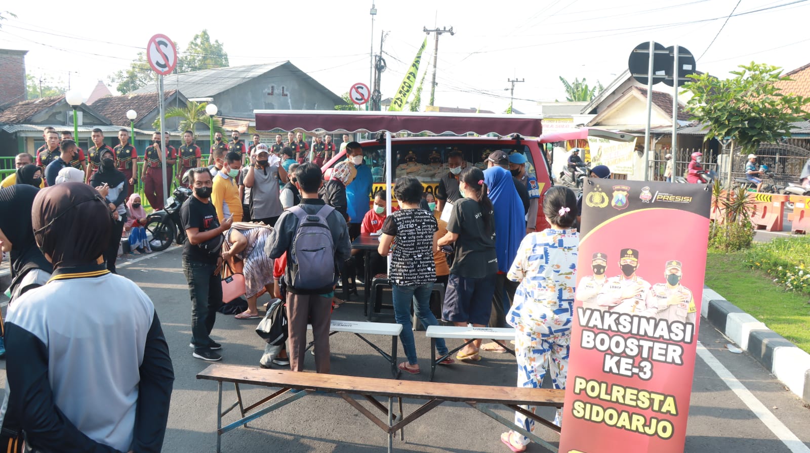 Di lokasi kegiatan hadir secara langsung Kapolresta Sidoarjo Kombes Pol. Kusumo Wahyu Bintoro memantau jalannya vaksinasi booster di Pasar Suko. Ia berharap masyarakat tidak lengah bahwa Covid-19 masih ada. Bagi masyarakat yang belum disuntik vaksin agar segera mendatangi gerai vaksinasi Covid-19, serta selalu patuhi protokol kesehatan.