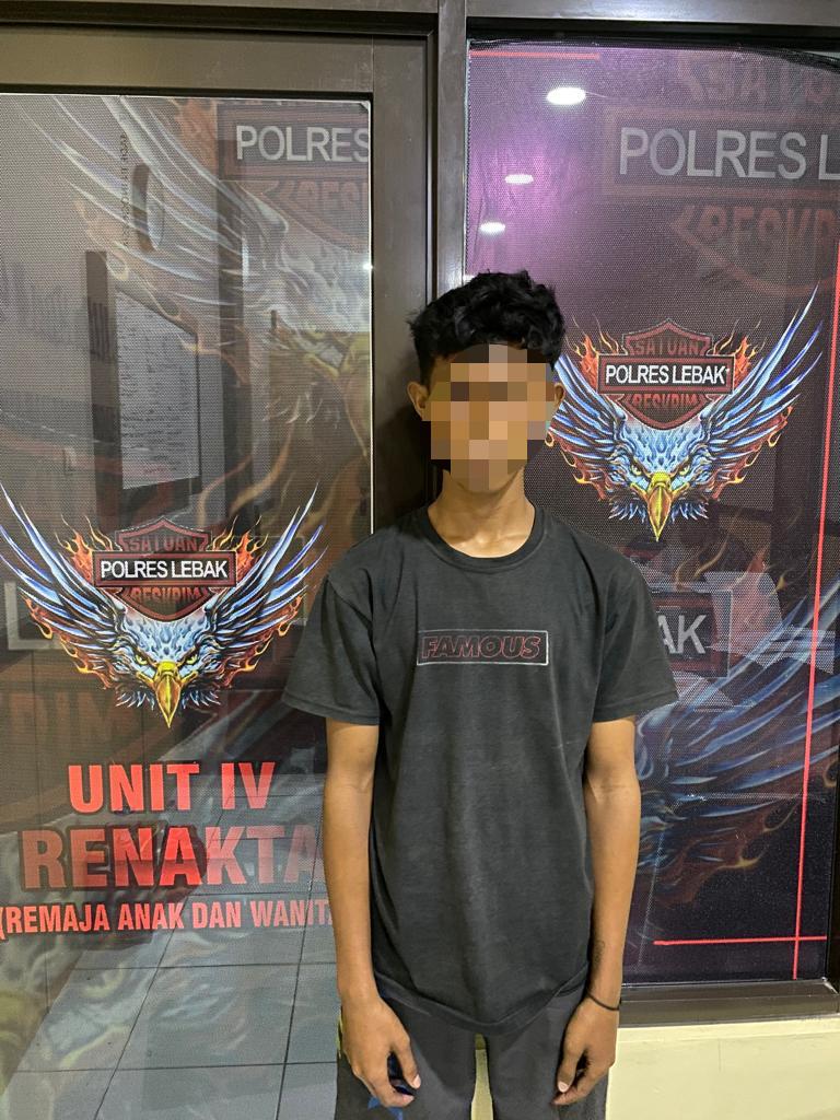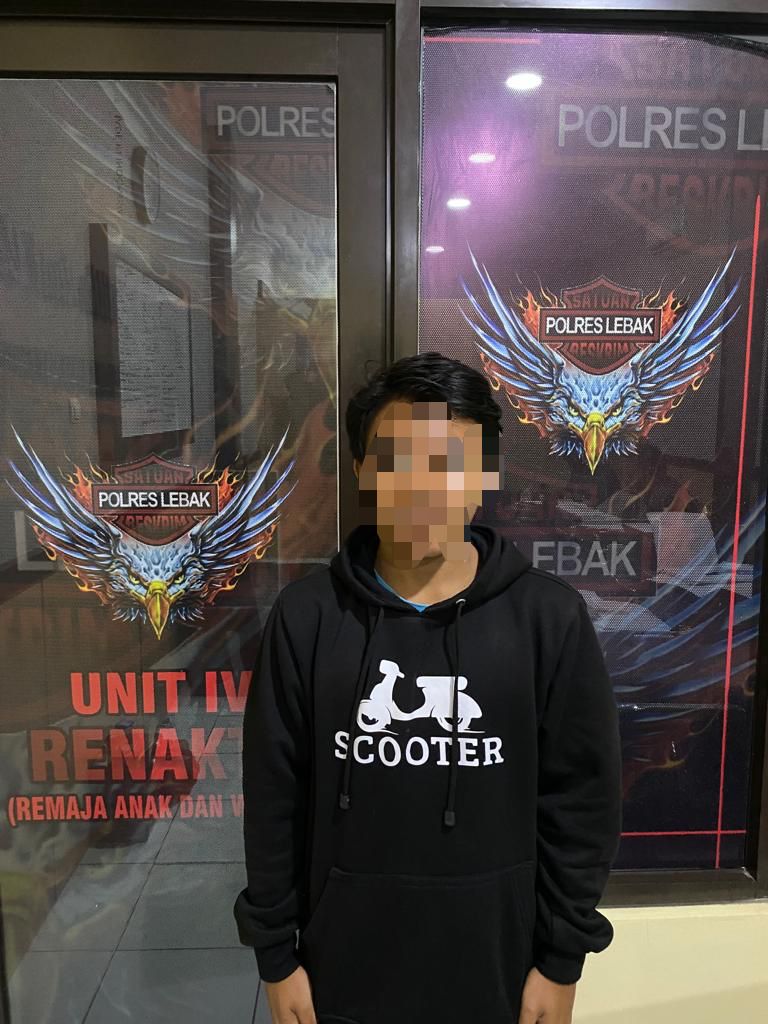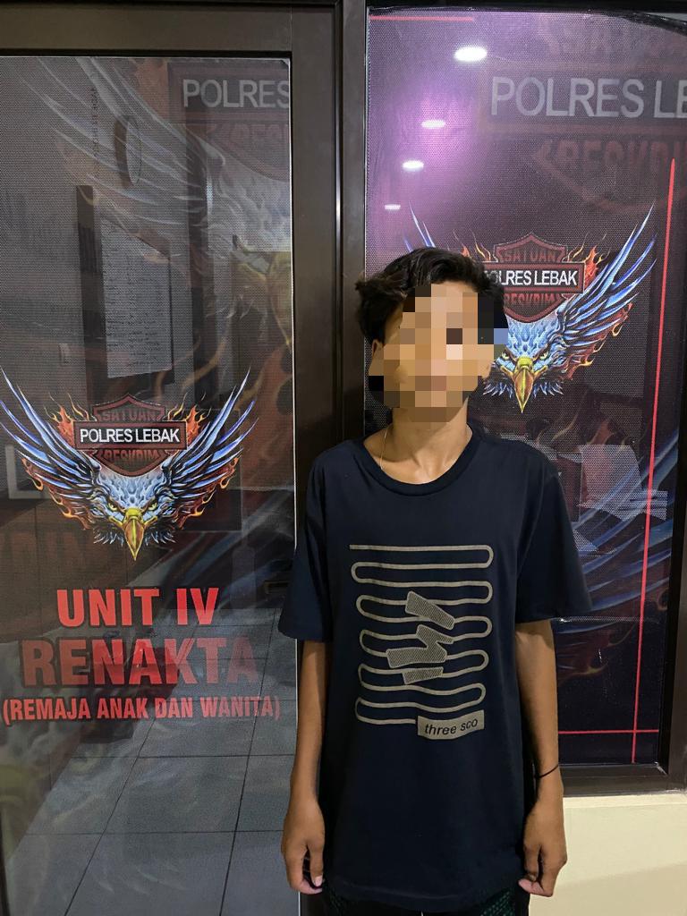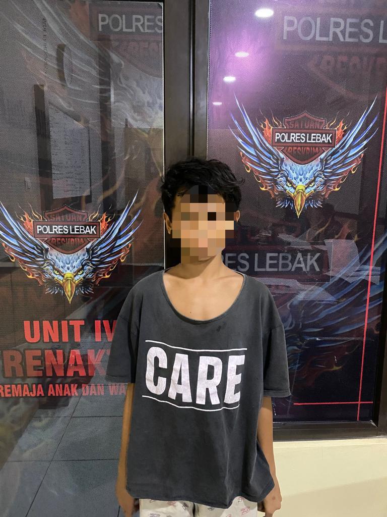 Empat pelaku yang masih dibawah umur berhasil diamankan Jajaran Sat Reskrim Polres Lebak Polda Banten diantaranya Sdr. AD (14) , Sdr. MA (15), Sdr. MI(16) dan Sdr. HB(13) berikut barang buktinya 1 (satu) buah kaos lengan pendek warna hitam, 1 (satu) buah celana pendek warna hitam, 1 (satu) buah kayu dengan panjang kurang lebih 1 (satu) meter, 1 (satu) buah batu, 1 (satu) buah sepeda motor Honda beat warna biru putih dan 3 (tiga) buah tali.