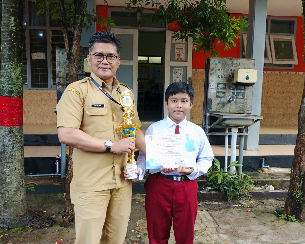 Novian Slamet Riyadi S.Pd menambahkan ” Saya ucapkan terimakasih kepada Muhammad Farhan Abidzar yang telah berjuang mengikuti lomba hingga berprestasi ditingkat Kabupaten, dan perlu juga saya sampaikan banyak terimakasih kepada para dewan guru SDN Jember Kidul 03 yang telah bekerja keras dalam mendidik siswa-siswi hinga SDN Jember Kidul 03 banyak meraih prestasi ” tambahnya. ( Rid )