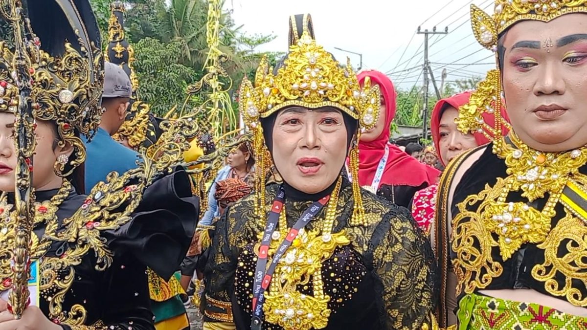 Mujiasih Spd, Kepala Sekolah Negeri Lojejer 05, saat turut serta Kirab Budaya