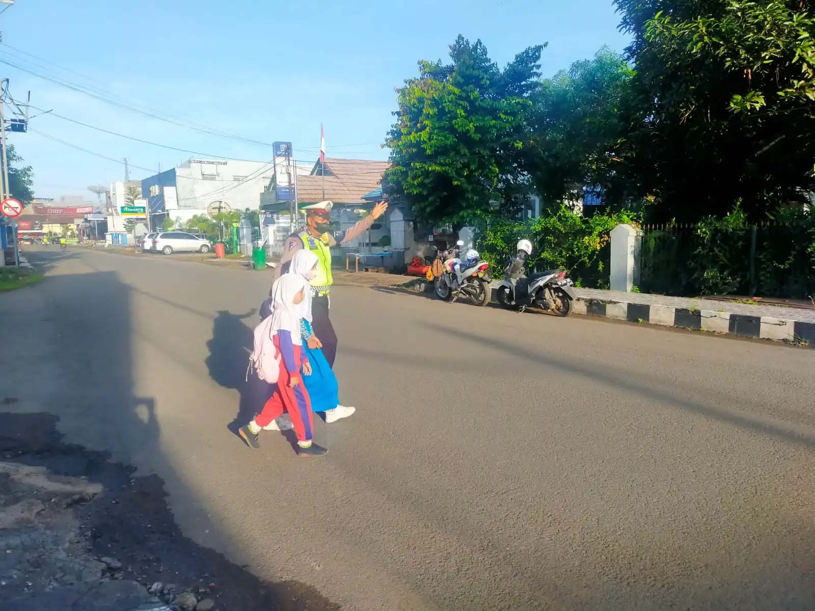 “Tak hanya melaksanakan pengaturan jalan, personil Polres juga turut membantu menyebrangkan siswa-siswi sekolah yang hendak menyeberang jalan. Hal ini guna memberikan rasa aman bagi para pelajar mengingat kondisi sekolah yang banyak berada dipinggir jalan yang merupakan jalan lurus yang menyebabkan sebagian kendaraan yang melintas berjalan dengan kecepatan tinggi”,terangnya.