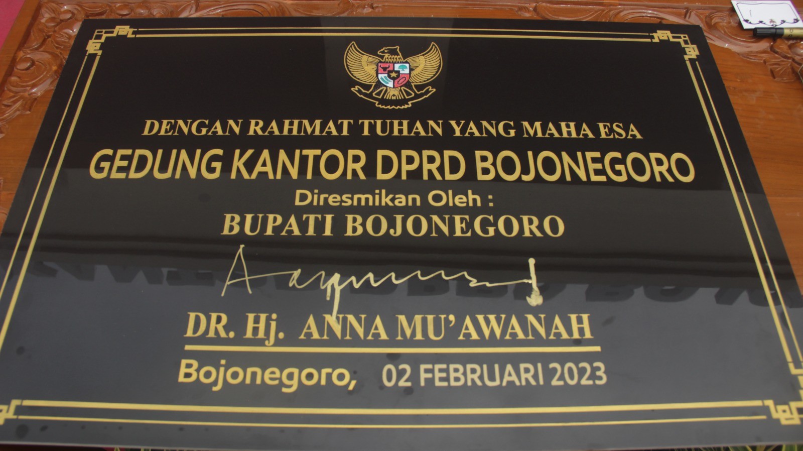 Bupati Bojonegoro Anna Mu’awanah resmikan gedung baru kantor Dewan Perwakilan Rakyat Daerah (DPRD) Kabupaten Bojonegoro, Kamis (2/1/2023). Kantor baru tersebut berada di Jl. Veteran Bojonegoro.