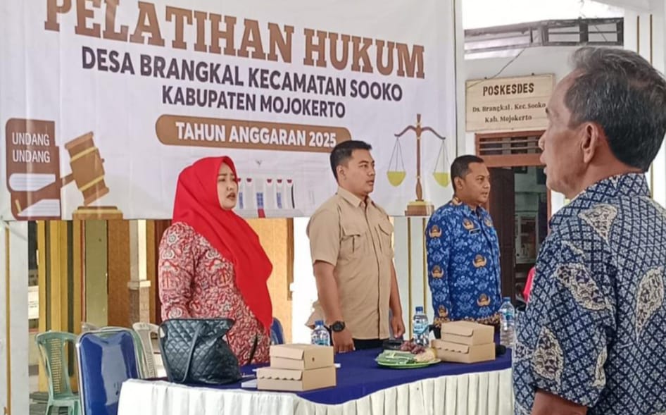 Dalam upaya untuk meningkatkan pemahaman dan kesadaran masyarakat Desa akan hukum serta hak dan kewajiban mereka dalam hukum yang berlaku, Kepala Desa Brangkal Kecamatan Sooko Nur Ely Suryani, S.Pd, yang akrab disapa Ning Lurah ini menyelenggarakan Program Pelatihan Hukum bagi warganya, di Balai Desa Brangkal Kecamatan Sooko Kabupaten Mojokerto, Kamis, ( 17 / 07 / 2025 ).