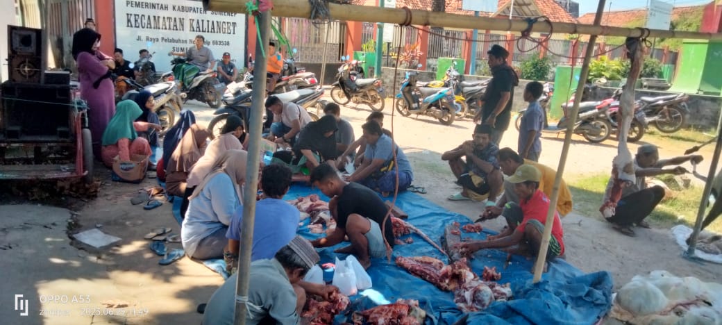 Kamis (29/06/2023) terlihat kompak saat idul Adha, tenaga Koli Bongkar muat (TKBM) Kalianget bersama sebagian instansi yang ikut serta melaksanakan kurban bersama-sama dilingkungan kecamatan kalianget, kabupaten Sumenep.