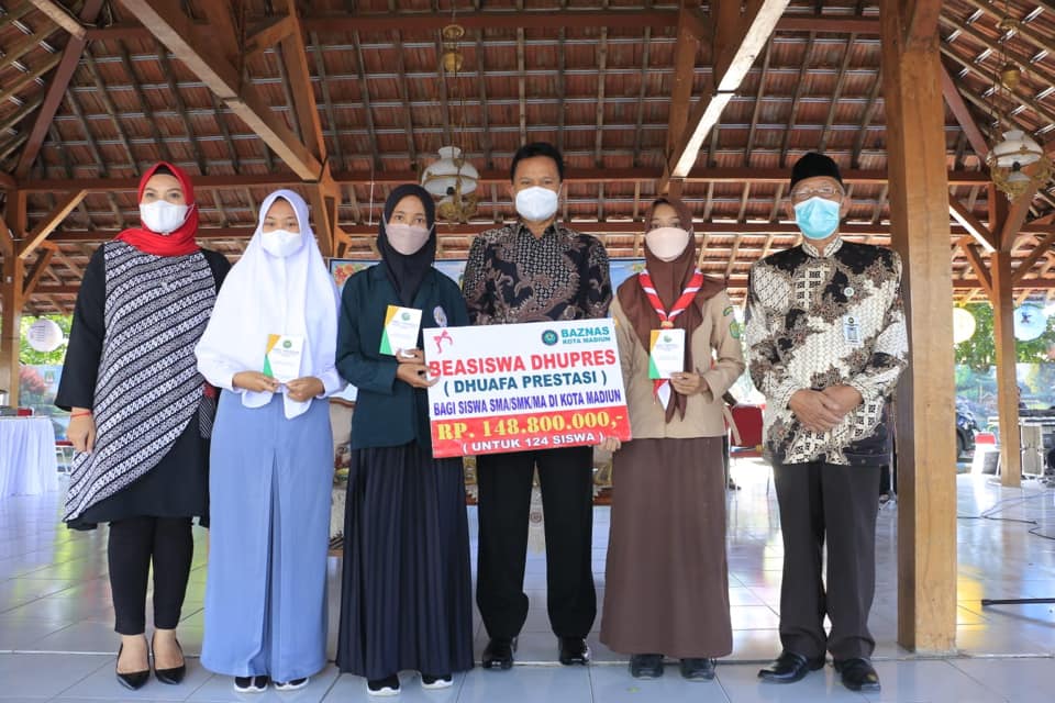 Bantuan tersebut berasal dari Badan Amil Zakat Nasional (Baznas) Kota Madiun. Penyerahan dilakukan di Ngrowo Bening Edupark, Sabtu (11/12). Total beasiswa yang diberikan senilai Rp 148.800.000. Dalam kesempatan itu wali kota menyebut beasiswa harus digunakan seoptimal mungkin untuk pendidikan.