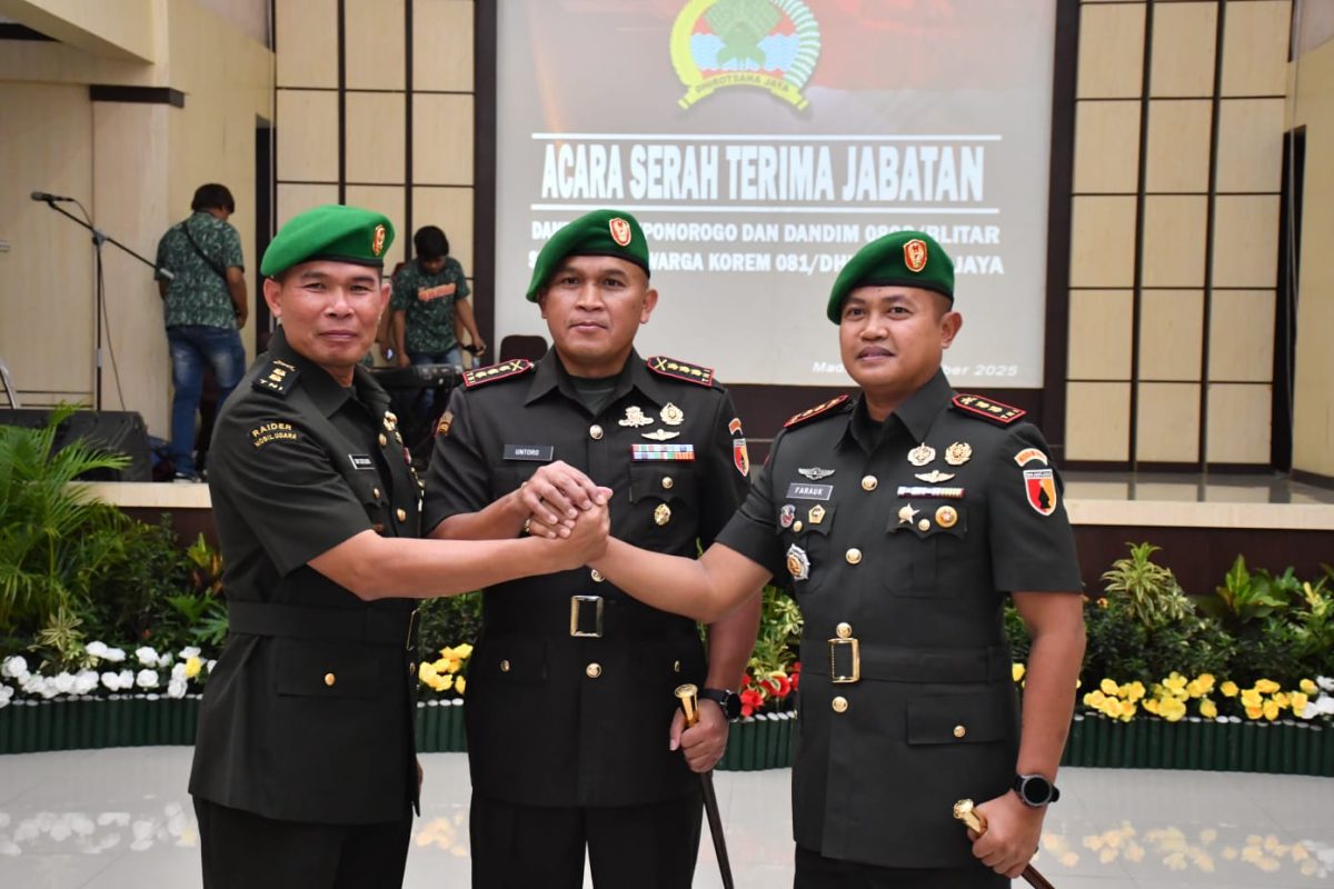 Hari ini jabatan Komandan Kodim 0802/Ponorogo secara resmi diserahterimakan dari Pejabat Lama (Letkol Inf Dwi Soerjono) kepada Pejabat Baru ( Letkol Arh Farauk Saputra, S.Sos.), Sabtu (25/10/2025).