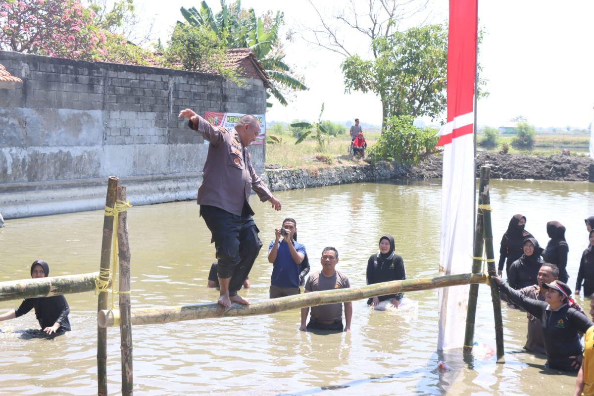 Baru – baru ini Jumat, (18/8/2023). Polresta Sidoarjo bersama ASN, Polsek Jajaran, Wartawan dan Forkopimka Tanggulangin telah merayakan Dirgahayu Republik Indonesia ke-78, menggelar lomba menangkap bebek dalam kolam, pukul bantal diatas tambak dan berjalan diatas bambu dan sebagainya, yang berlangsung di Desa Banjarpanji, Kecamatan Tanggulangin.