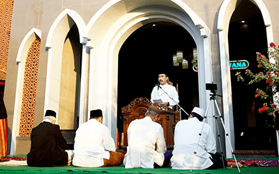 Bupati Pati Haryanto melaksanakan sholat Idul Adha di Masjid Besar Al-Mukarromah Juwana Minggu (10/7/2022), didampingi camat Juwana dan tokoh agama setempat.