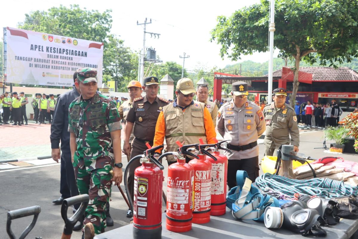 Apel dipimpin langsung oleh Kapolres Wonogiri AKBP Wahyu Sulistyo, S.H., S.I.K., M.P.M., dan dihadiri jajaran Forkopimda Wonogiri mulai dari Dandim 0728/Wonogiri Letkol Inf Edi Ristriyono, Wakil Bupati Imron Rizkyarno, hingga Kepala BPBD Fuad Wahyu Pratama.