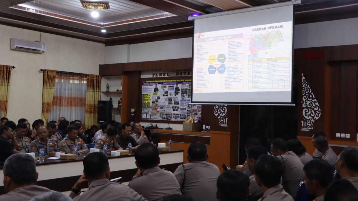 Polres Wonogiri Polda Jateng, Dalam rangka kesiapan menghadapi agenda Pemilu 2024, Polres Wonogiri menggelar latihan pra Operasi (Lat Pra Ops) dengan sandi operasi “Mantab Brata Candi 2024” yang berlangsung di Aula Sanika Satyawada Polres Wonogiri, Selasa, (17/10/2023).